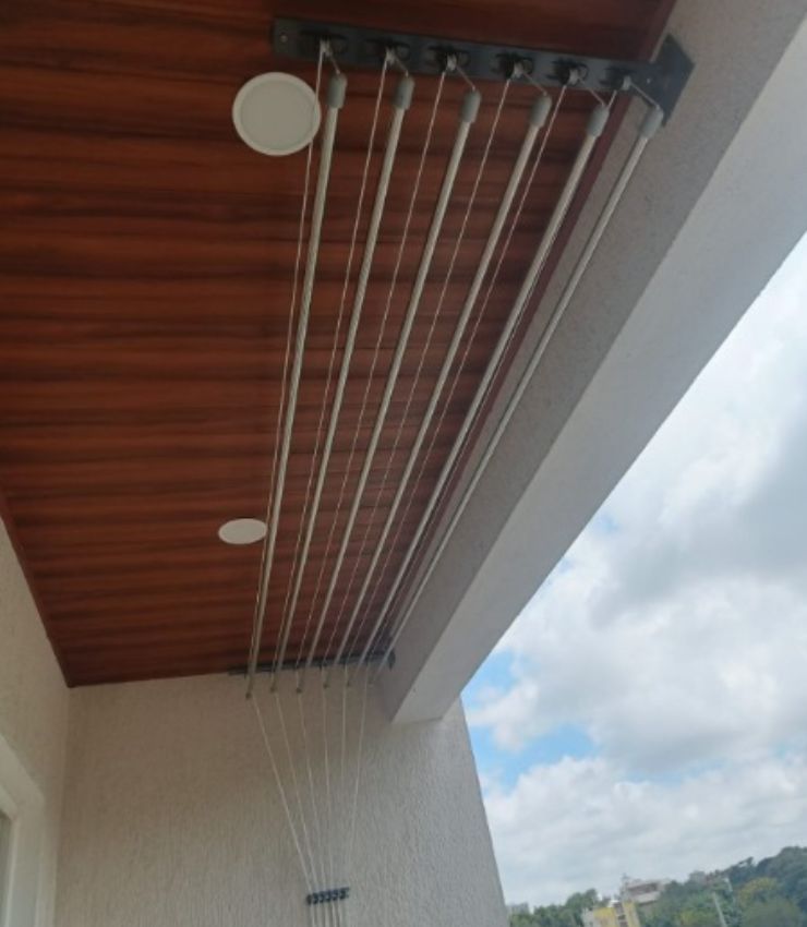 Pull & Dry cloth hangers for balconies offer a space-saving solution for drying clothes. These durable, wall-mounted hangers are easy to use, adjustable, and rust-resistant, ensuring efficient drying while keeping your balcony neat and organized. Ideal for urban homes!